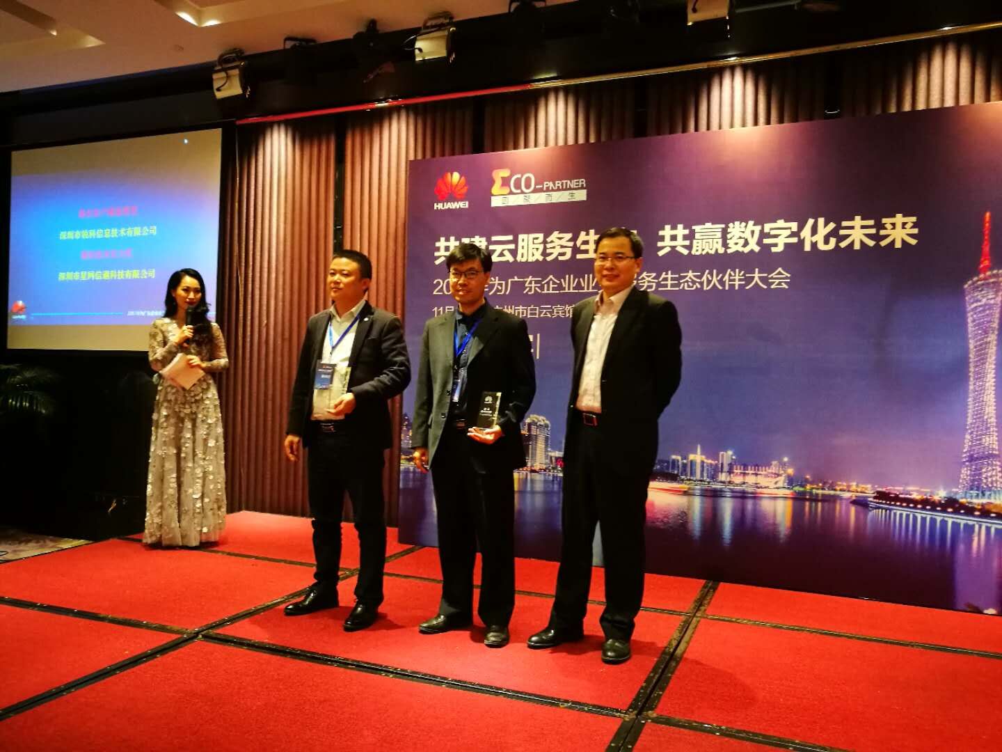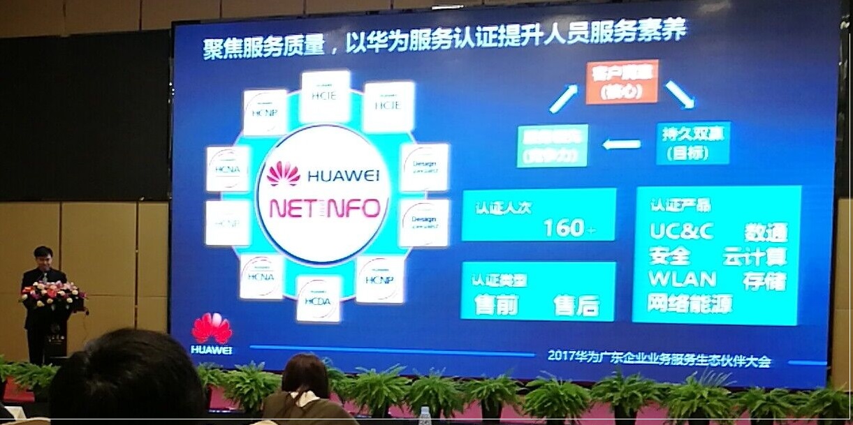 2017年11月23日,華為共建云生態(tài)共贏數(shù)字化未來(lái)--2017年華為廣東企業(yè)業(yè)務(wù)服務(wù)生態(tài)伙伴大會(huì)在廣州市白云賓館召開,星網(wǎng)信通科技有限公司作為華為的首批生態(tài)伙伴,參加了會(huì)議并發(fā)表了演講,其中星網(wǎng)信通技術(shù)總監(jiān)孫愛(ài)華孫總,代表我司的實(shí)力發(fā)表了擲地有聲的演講。并且在會(huì)議的最后星網(wǎng)信通科技有限公司又是拿下華為最佳技術(shù)實(shí)力獎(jiǎng)。下面是會(huì)議的精彩瞬間。