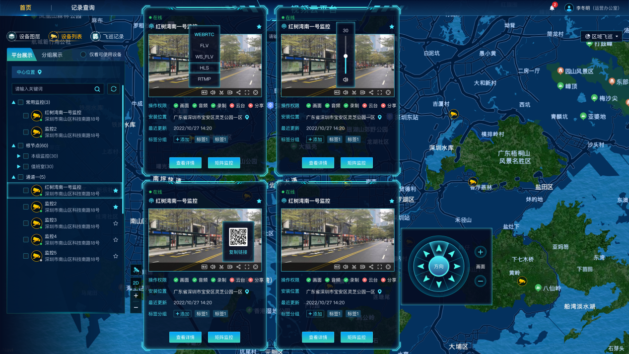 查看設備畫面可切換視頻播放格式,避免無法播放或卡頓;支持視頻畫面截圖、錄屏并保留記錄后續下載查看;可通過鏈接、二維碼臨時向外部人員分享視頻畫面;可遠程控制云臺調整畫面角度;當發生緊急情況或發現危險行為可通過設備遠程語言喊話